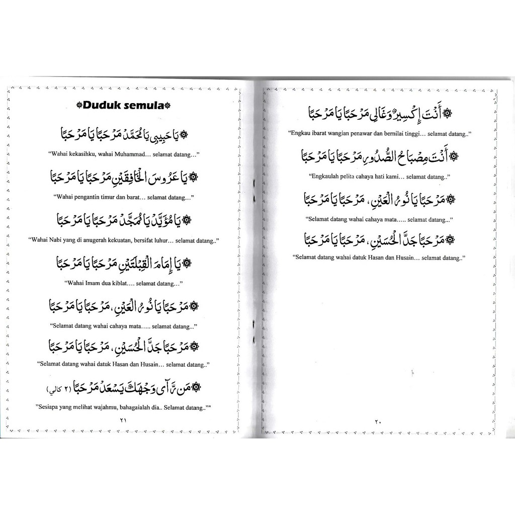 Teks barzanji marhaban pdf. Puji-pujian yang melengkapi segala tempatnya dan membalas segala limpah kurnianya. Perasan tak ramai yang lebih suka membaca doa dalam bahasa Arab yang kita tak faham berbanding bahasa Melayu yang kita 100 peratus faham.